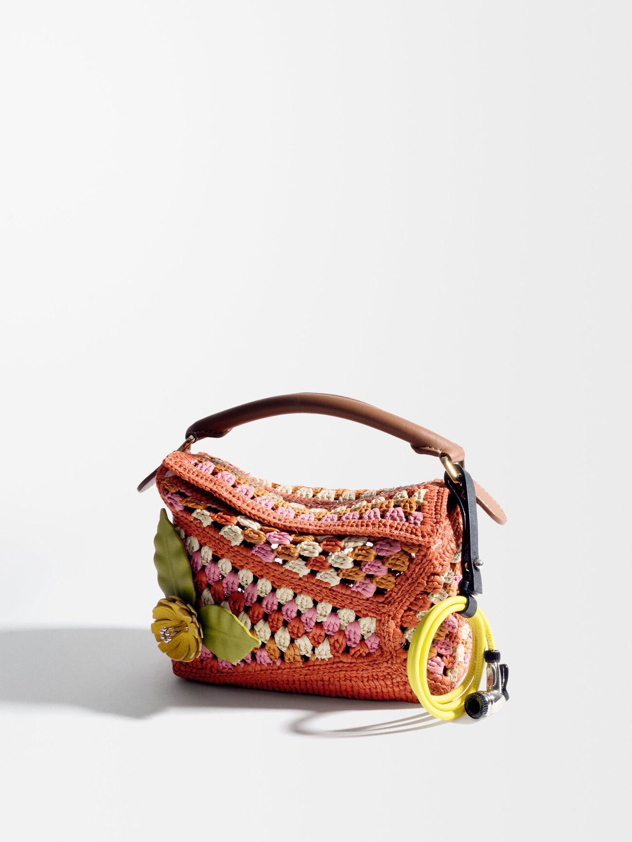 中号拉菲草和牛皮革 Puzzle Fold 手袋